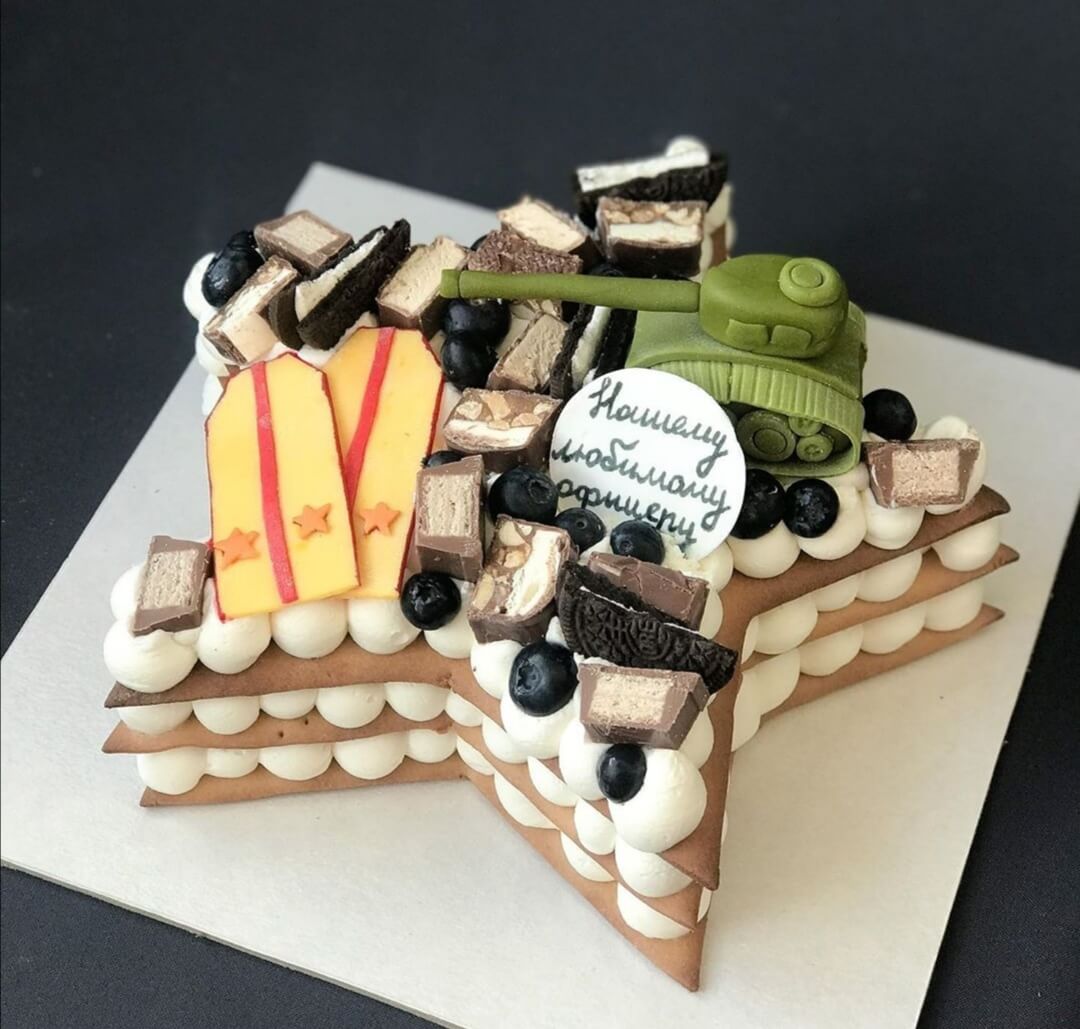 Военно-звездно-сладкий праздничный торт для самого любимого офицера
